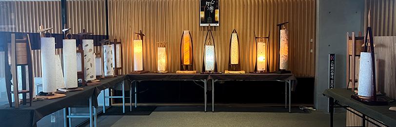 弊社提供にて行灯作家の大石文司 氏制作の行灯を展示する「心を癒やす灯り」展を浜松いわた信用金庫の高丘支店で開催中です。